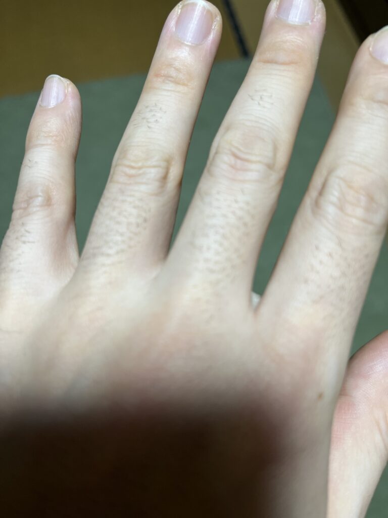 顎髭も脱毛前と比べても目に見えて減った感じはありませんが、通常、1日1回は髭剃りする必要があったのですが、髭の伸び方が少し遅くなったかなと感じます。(光の加減で比較しにくいかもです…)